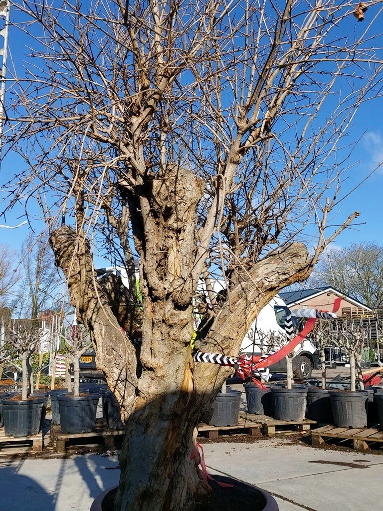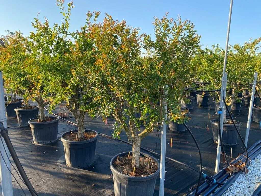 Punica granatum (Granaatappel) is een exotische fruitboom die u in het Middellands Zeegebied tegenkomt. Deze bomen importeren wij rechtstreeks vanuit Spanje, hierdoor kunnen wij deze solitaire bomen u zeer scherp geprijsd aanbieden! Dit is een leuk alternatief voor de olijfbomen die besmet kunnen zijn met de Xylella bacterie. Punica heeft ook een zeer mooie, karakteristieke oude stam. Punica granatum kan enige vorst verdragen, maar wij raden aan om hem in de winter goed te beschermen met bijvoorbeeld een dik bladerdek. Daarnaast is bijvoorbeeld bij een tuincentrum vorstdoek te koop die u over de kruin van de boom kunt trekken. Punica is een goede kuipplant die u goed in pot kunt houden. Uiteraard belangrijk dat de grond dan niet uitdroogt en in het voorjaar bijmesten De aangegeven maten is de omtrek van de stam (in cm). De stamhoogte van de Punica granatum is circa 100 cm.