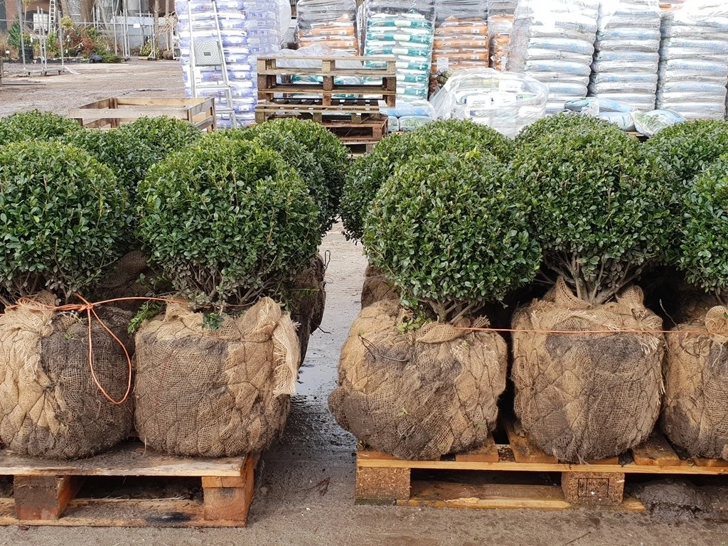 Deze Japanse hulst is strak geknipt in bolvorm!
