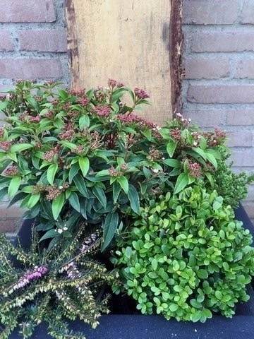 Een leuk winterpakket met groenblijvende struikjes om cadeau te geven of gewoon om uw eigen tuin ook in de winter wat meer kleur te geven. Het winterpakket kan zowel in de vollegrond als in een plantenbak (40 x 40 cm) worden aangeplant.